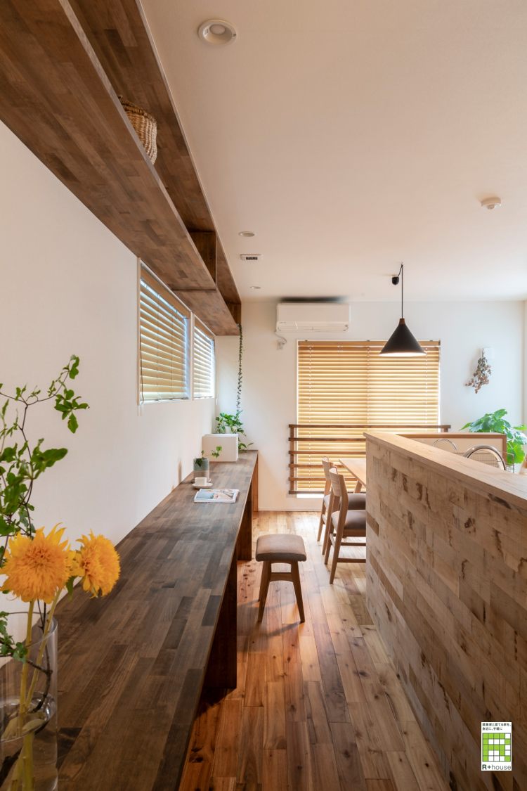 ◎長いカウンターは、子供たちの勉強コーナーやご主人の仕事スペースなど多目的に使用できる。