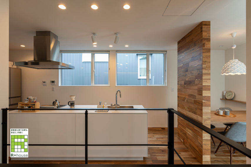 ◎アイランドキッチンからは2階のすべての場所が見渡せる。