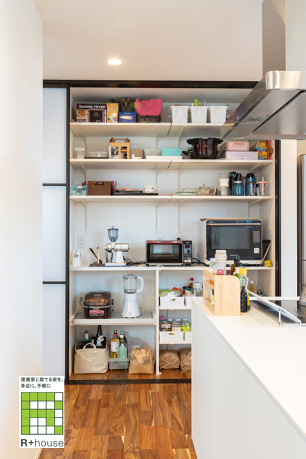 ◎キッチンの横には扉で隠せる大容量の収納を。